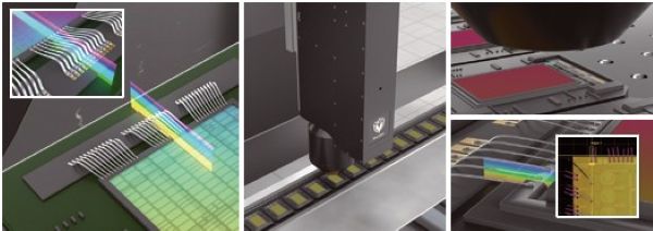 表面に光沢のある細いワイヤーの高さ・位置を高精度に計測し、断線や曲がりを検査します。ボールバンプのコプラナリティも計測できます。