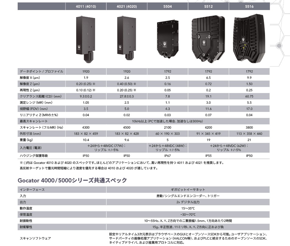最高50nmの繰返し高さ解像度で精密計測を行います。最大スキャンレート10kHz以上、フルスキャンレンジでも2100~4500Hzの高速撮影で速度が要求されるインライン検査に対応します。